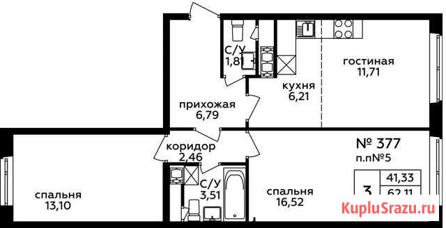 Общая площадь: 62.1 м²