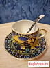 Новый. Фарфор. Маленькая чашка высота 5 см, диаметр 5 см. Блюдце диаметр 11 см. Ложечка длина 9 см. Категория: посуда и товары для кухни