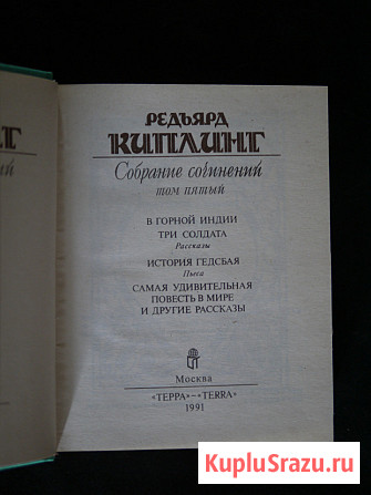 Киплинг Редьярд. Собрание сочинений в пяти томах. М. Терра. 1991 г. 608+576+528+448+464 с. Твердый, суперобложка, Уменьшенный формат.
