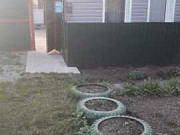 1/2 дома.Есть баня,гараж,лет.кухня,дровник.В доме два входа.Кухня 10 м2,три комнаты,коридор,кочегарка,а так же два сан.азла,душ.кабина,вод.нагреватель.Торг.