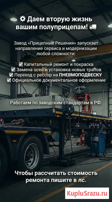 Есть в наличии и другие модели тралов, низкорамные и высокорамные с различной грузоподъёмностью и длиною рабочей площадки! У нас своё производство тралов! В наличии на стоянке! ЭПТС в наличии! Трал высокорамный, тяжеловес Максимальный вес груза 40000 кг Снаряженная масса 10 тн Нагрузка на ССУ 17...