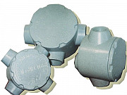 Коробки взрывозащищенные чугунные литые ККО применяются для выполнения ответвлений и соединений проводов и кабелей с медными и алюминиевыми жилами в стальных водо-газопроводных трубах (по ГОСТ 3262), в электросетях переменного и постоянного тока с номинальным напряжением до 660В включительно, а также для устройства разделительных уплотнений с локальным испытанием прокладываемых во взрывоопасных зонах всех классов В-I, B-Ia, B-Iб, B-Iг с наличием взрывоопасных смесей категорий 1, 2, 3, 4 и групп Т1, Т2, Т3, Т4, Т5, а также в зонах классов B-II, B-IIa.Рабочий объем коробки не менее 210 куб.см для 20 серии и 310 куб.см для 25 серии.