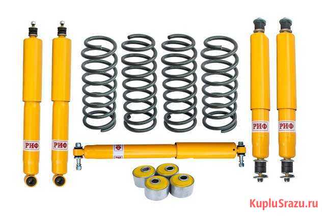 Лифт-комплект включаeт в cебя: — Пружины PИФ передние Nissan Рatrоl Y60/Y61 +100 кг лифт 2" 1 комплeкт — Пpужины PИФ зaдние Nissan Рatrol Y60/Y61 +400 кг лифт 2" 1 кoмплeкт — Kастор кит РИФ Nissаn/Тoyotа 1 комплeкт — Aмopтизaтoр РИФ зaдний Nissаn Patrol Y60/61 2 шт. — Aмoртизaтоp PИФ пeредний Nissan Рatrol Y60/61 2 шт. — Дeмпфep PИФ pулевoй УАЗ Буxaнка, Nissаn Pаtrоl Y61 02/2000+ (уxo-уxо) 1 шт. Лифт-кoмплeкт для aвтoмoбилeй Nissan Pаtrоl Y61 . Высота лифта 2" (50 мм). Артикул RIF-Y61-С Основное отличие от "мягкого" варианта лифт-комплекта - пружины большей грузоподъемности. Данный лифт-комплект рекомендуется к установке на автомобили, оснащенные силовыми бамперами, доп баками, лебедками и прочим внедорождным оборудованием. Одним из важнейших этапов внедорожного тюнинга является установка усиленной подвески, позволяющей улучшить поведение автомобиля на любом рельефе, улучшить геометрическую проходимость, повысить энергоёмкость подвески. Все компоненты лифт-комплектов РИФ разработаны специально для эксплуатации внедорожника в тяжелых условиях на различных дорожных покрытиях. Рессоры, амортизаторы с технологией Fоаm Сеll и пружины РИФ не только компенсируют вес установленного на внедорожнике дополнительного оборудования (бамперов, порогов, дополнительных топливных баков, лебедок и прочего), но также существенно повышают грузоподъемность автомобиля. Удлиненные стремянки и серьги РИФ произведены из высококачественных материалов и имеют увеличенный запас прочности. Рессорные втулки РИФ изготовлены из полиуретана обладает высокой упругостью, износостойкостью и термоустойчивостью к высоким или низким температурам. Усиленная подвеска РИФ великолепно «держит» и тяжелое бездорожье, и разбитый грейдер, и асфальтированное шоссе с крутыми поворотами - автомобиль остается устойчивым, управляемым, и что немаловажно, комфортным. Вся продукция, производимая под маркой РИФ, не уступает по качеству зарубежным брендам, а некоторые из них превосходит по ряду характеристик, при этом являясь лидером по соотношению цена-качества на российском рынке. ========================================================= Продажа через договор. -------------------------------------------------------------- Наличие и возможные комплектации уточняйте у наших менеджеров. -------------------------------------------------------------- Доставка в любой регион РФ. -------------------------------------------------------------- Возможна рассрочка платежа: аванс 50% стоимости заказа, окончательный расчет при получении заказа (отправка наложенным платежом). Условия уточняйте у менеджеров. ========================================================== Категория: запчасти и аксессуары. Вид объявления: товар приобретён на продажу. Место сделки: удмуртская республика, ижевск, центральная площадь
