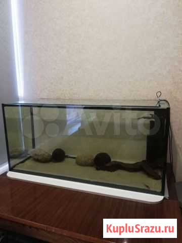 В отличном состоянии, с камнями, корягой, кораллом, фильтром и нагревателем воды. Габариты аквариума: ширина по боковой стенке 30 см, высота 50 см, длина 80 см. Объем 120л. Пластмассовая крышка черного цвета с подсветкой (2 лампы). Без тумбы. Аквариум готов к транспортировке.
