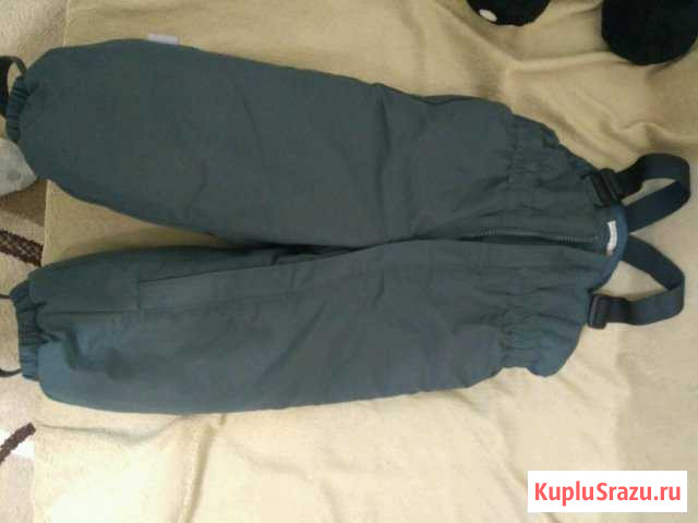 Брюки толстые с начесом,застегивается на молнию и пуговицу,пришита резинка вместо подтяжек,можно убрать,если не нужно.Цвет очень тёмно-синий,почти как чёрный. В хорошем состоянии. Категория: детская одежда и обувь. Размер: 110-116 см (4-6 лет). Состояние: б/у