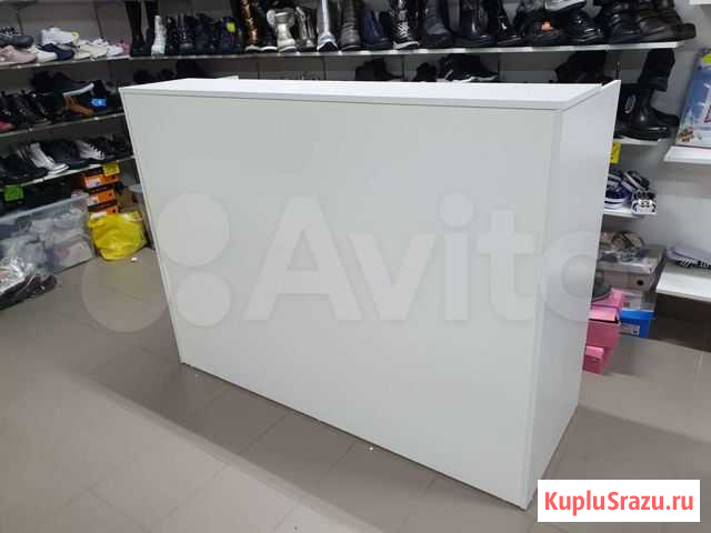 Стойка ресепшн, белая, ширина 1.45 метра, высота 1.1 метра, глубина 0.54 метра. Состояние идеальное, не использовали. +дополнительные полки. Разбирается легко. Две штуки, вторая не собиралась. Состояние: б/у.