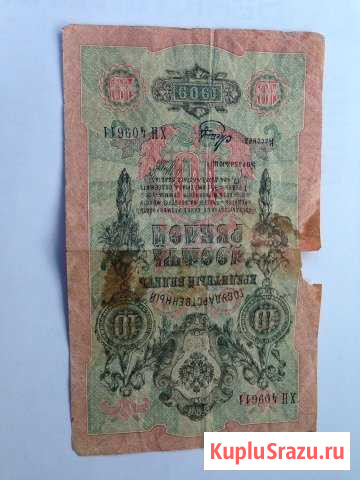 Государственный кредитный билетъ Десять рублей 1909 г. Управляющий Шипов. Категория: коллекционирование