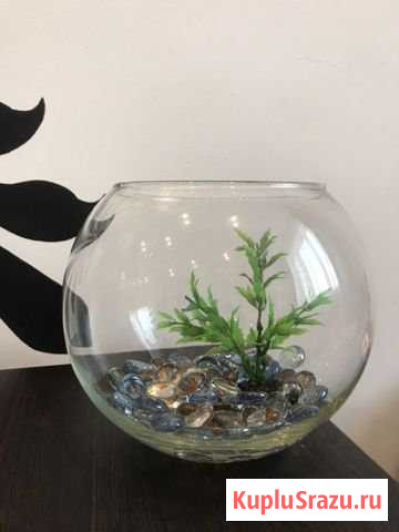 Аквариум круглый Объём 3 литра Камушки и растение в подарок