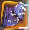 Раздвижные детские ролики, полный комплект с защитой, шлемом и сумкой для компактного хранения. Размер регулируется от 26 до 28. Крепкие, надёжные. Колёса переставляются- можно оставить как трёхколёсные (для большей устойчивости), либо поставить три колеса в ряд. Размер шлема и защиты...
