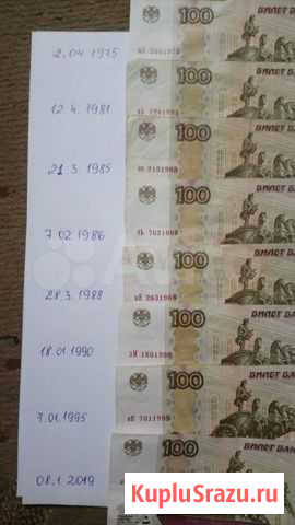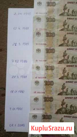 100 рублёвые купюры с красивыми номерами(за одну 100 руб купюру) последнее фото-цена договорная Состояние: б/у.