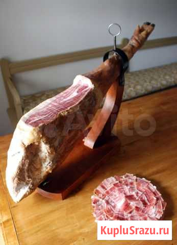 Отличный хамон (вяленый окорок), срок вяления 16 месяцев. --- Возможна курьерская доставка по всей стране в течение 1-3 дней (в зависимости от удалённости). --- Цена за 1 ногу весом 6 кг --- Документы имеются. Вид объявления: продаю своё