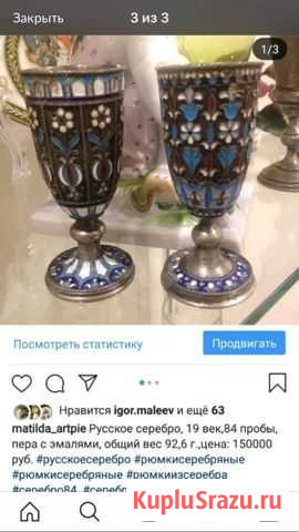 Серебряные рюмки с эмалями 160 000 руб.
