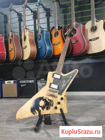 Электрогитара формы Explorer Стоят новые хамбакеры "Artec" Новые струны. Чехол + запасной ремень в подарок -Форма корпуса электрогитары explorer -Материал корпуса: Липа -Материал грифа клен -Накладка: палисандр -Количество ладов 22-Схема звукоснимателей H-H Состояние: новое.