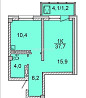 Новостройка; Продает: Собственник; Монолитный дом; Общая площадь: 39 м²; Площадь кухни: 13 м²; Жилая площадь: 15 м²