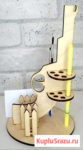Карандашница "Револьвер" Изготовлен из фанеры 3 мм. d основания 14,5 см, высота 23 см. Состояние: новое.
