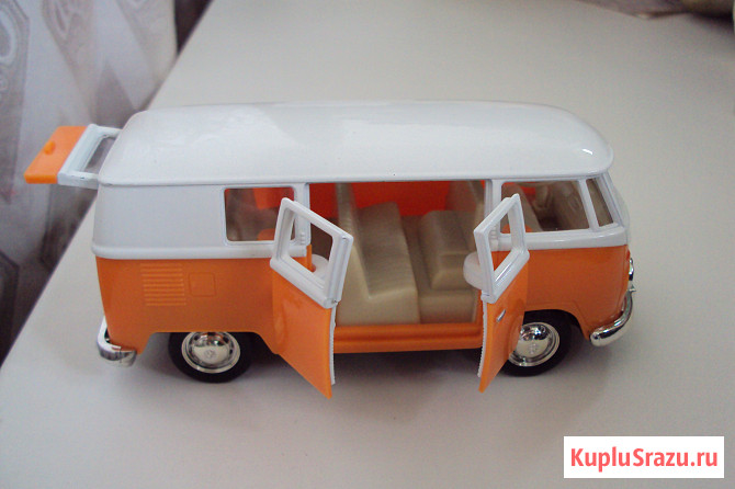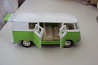 Цвет:бело-зелёный;бело-оранжевый.Масштаб:1:36,сделан из металла и пластика,двери с боку и сзади открываются,машинка ездит