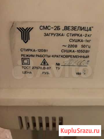 Стиральная машина «малютка» б/у СМС-2Б «ВЕЗЕЛИЦА» Стирка 2кг 120Вт Сушка 1кг 1050Вт 220В 50Гц Состояние: б/у.