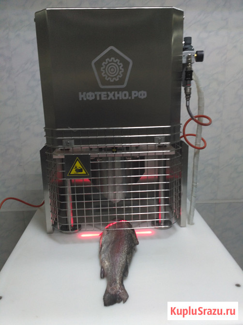Данное оборудование используется для обезглавливания крупных пород рыб (тресковые, лососевые, пр.), устанавливается в комплексно-механизированную линию по первичной переработке рыбы в разделочных цехах рыбоперерабатывающих предприятий. Устройство обеспечивает V-образный вид реза.