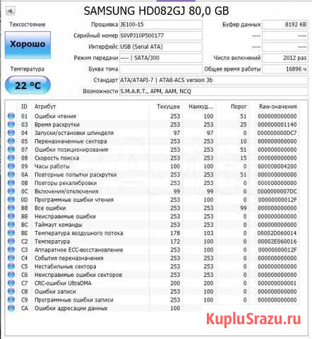 Вся инфа на скриншотах, все диски протестированы, работают корректно. Есть фото SMART = есть диск. 250p - SAMSUNG HD082GJ 3.5" 80Gb. 300p - Maxtor 6V160E0 F\W VA111900 WNN 5001075080155181 160Gb 400p - ST3200820AS FW 3.AAC SN 5QE0PPCP 200Gb 450p - ST3250410AS sn-9RY11GCM 250Gb все модели гуглятся для полных характеристик. Самовывоз с указанного адреса строго по будням или доставка Пару дней на проверки. Состояние: б/у.
