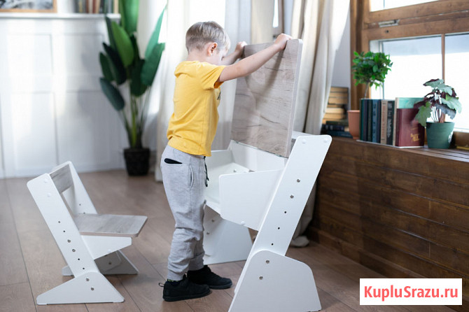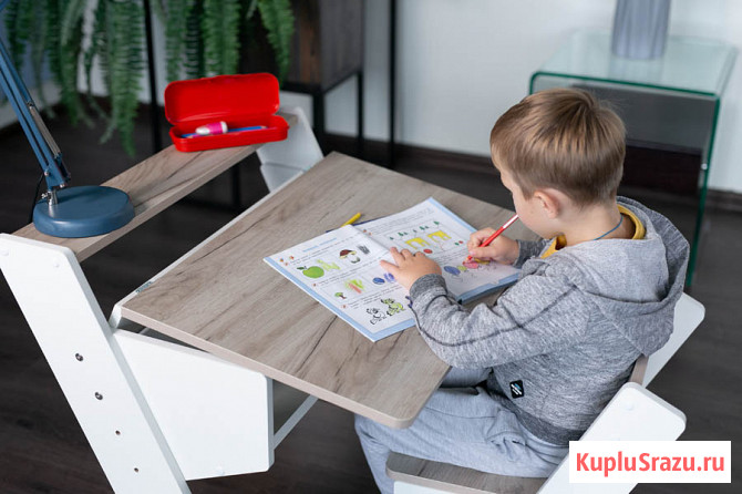 Экономия денег, потому что комплект подойдет для детей от 100 до 160 см. Пока для уроков не понадобится компьютер — места для книг, тетрадей и творчества достаточно.