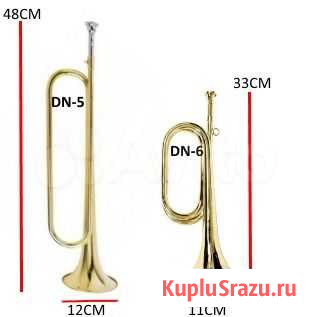 Горны-материал - жёлтая медь, покрытие- прозрачный лак, мундшук в комплекте Состояние: новое.