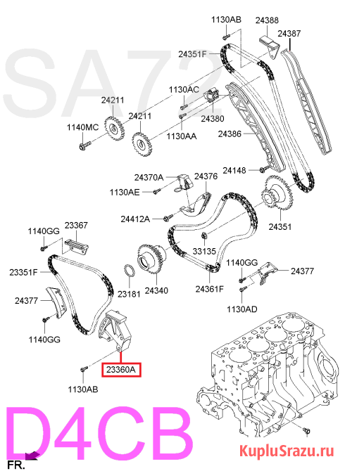 Цепь верхняя Hyundai D4CB Оригинал. Новый. Made in Korea Номера: 24351-4A020 243514A020 24351-4A600 243514A600 для двигателя D4CB Применяется: Hyundai H1 Starex Grand Starex Porter H100 Libero Mighty Kia Bongo Sorento K-series P.S. Есть возможность установки и отправка в регионы. По VIN-коду...