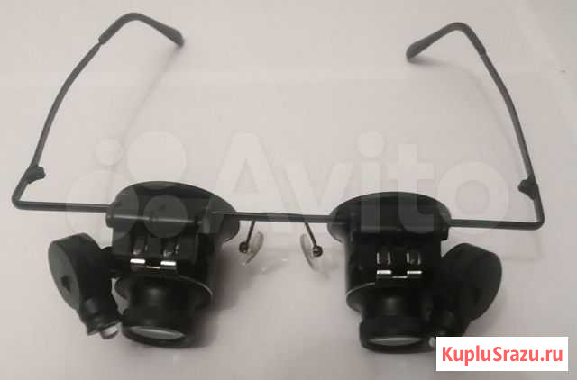 Ювелирные очки-лупа с подсветкой 20х Подсветка - светодиодная. Окуляры могут передвигаться по оправе и можно поднять их наверх Состояние: новое.