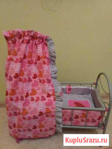 Игрушечная кроватка для кукол на колёсиках. Над изголовьем кроватки установлен балдахин. В наборе: металлический каркас кроватки, матрас-люлька, подушка, одеяло с аппликацией. Габариты: Ширина: 55.8 см Высота: 28.5 см Глубина: 10 см. Категория: товары для детей и игрушки. Состояние: б/у. Вид объявления: продаю своё. Место сделки: мурманск, улица ломоносова