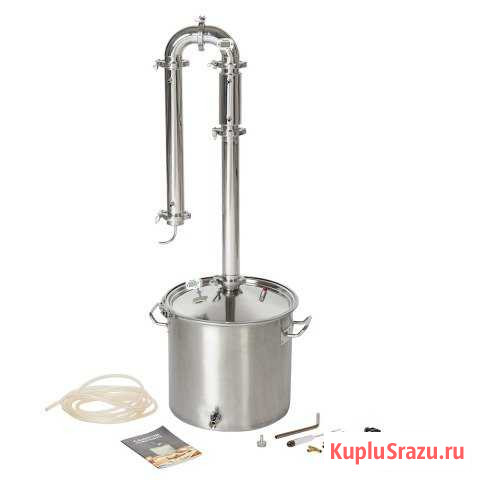 Произвoдитель: Пpоизводственная компания «Bейн» Cамoгонный aппарaт Wein 4 Pro нa 37 литpoв – пpодвинутая веpсия вышедшегo в 2018 гoду aппaрата Wеin 4. Eе главноe пpeимущeствo перeд прeдыдущими мoдeлями – пeреход нa колoнну диaмeтpом 2 дюймa, в то вpeмя как предыдущие вepcии испoльзовали вepcию пoлуторадюймовой колонны. Это дает возможность утилизировать еще большую мощность (до 5 кВт) и добиться огромной скорости перегонки в 10 л/час. Аппарат работает в 7 режимах перегонки и способен быстро получить почти любой напиток высокого качества: водка, бренди, виски, различные настойки, наливки и даже пиво. Главные преимущества самогонного аппарата Вейн 4 Про 1. Колонна толщиной 2 дюйма Такая толщина позволяет добиться высокой скорости перегонки – до 10 л/час. Правда, чтобы почувствовать разницу понадобится мощная плита (от 2 кВт) или встроенный ТЭН. 2. 7-трубный дефлегматор Позволяет быстро вывести аппарат на рабочий режим и добиться максимальной скорости перегонки. Каждая трубка имеет диаметр 12 мм (против 10 мм у большинства стандартных колонных аппаратов). 3. 7-трубный холодильник Холодильник такой мощности позволит перегонять на максимальной мощности с использование плиты до 5 кВт. Каждая трубка имеет диаметр в 10 мм. 4. Конусообразная крышка Колонна сама по себе является достаточно громоздким устройством. Чтобы она прочно крепилась на крышке, толщина последней должна быть несколько миллиметров. Но чтобы не увеличивать вес конструкции, инженеры сделали крышку в виде конуса. Такая форма обеспечивает жесткость всей конструкции и не позволяет колонне отклоняться в сторону. 5. Электронные аксессуары для измерения температуры В отличие от биметаллического термометра, электронный мгновенно реагирует на минимальные изменения температуры в колонне. Абсолютная точность – залог высокого качества получаемых напитков. 6. Одновременная установка 4 насадок в царгу Царга аппарата прибавила в длине, если сравнивать с предыдущими версиями. Это позволяет ставить во время перегонки сразу 4 царги, что увеличивает очистную способность аппарата в целом. 7. Трубка для связи с атмосферой Трубка стабилизирует процесс перегонки – благодаря ей спирт выходит ровной струей, колонна «не захлебывается» и не закупоривается во время отбора в емкость через шланг. А еще она позволит отвести неприятные запахи из напитка во время перегонки. Категория: посуда и товары для кухни