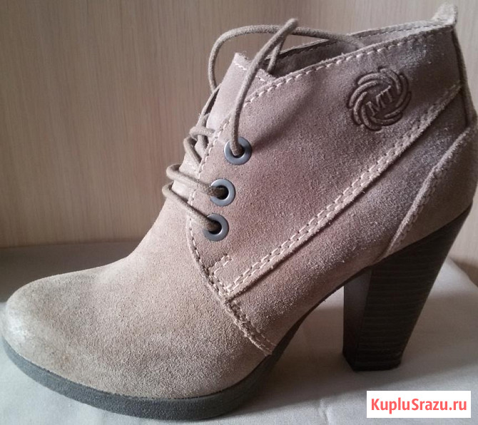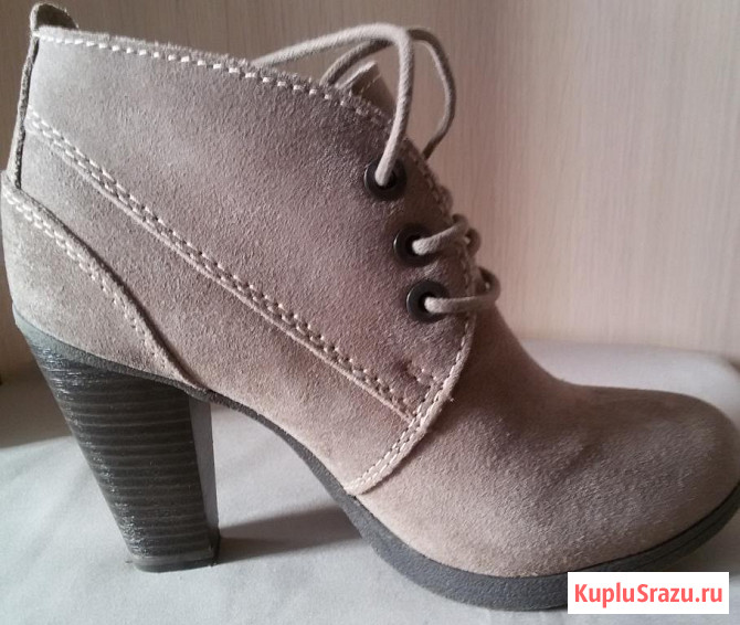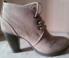 Новые. Натуральная замша. Внутри шерсть. Каблук 10 см, платформа 1 см. Красивого бежевого цвета с оттенком пудры. Стильные, элегантные, комфортные, тёплые.