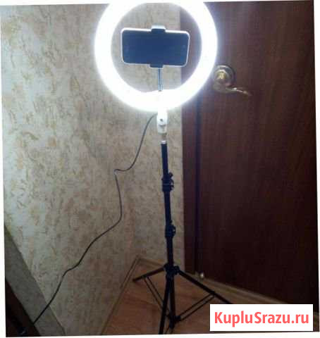 Кольцевая лампа со штативом и держателем для телефона. Максимальная высота штатива 2.1 м. Диаметр кольца 26 см- 1700р; 33см- 2500р. Состояние: новое.