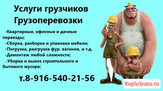 Услуги Грузчиков. Демонтаж. Уборка . Оплата : фиксированная или почасовая. Профессионально выполним : Погрузка - разгрузка автотранспорта, фур, контейнеров Помощь наших грузчиков на квартирных, офисных переездах Сборка - Разборка мебели при переезде Услуги Разнорабочих Выполнение...