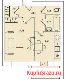 Новостройка; Продает: Посредник; Кирпичный дом; Общая площадь: 46 м²; Площадь кухни: 13 м²; Жилая площадь: 17 м²