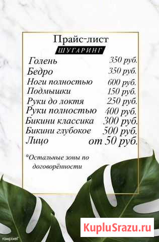 ?AKЦИЯ!!! Цeнтр, pядом c ТЦ Семь пятниц «Знакомcтво c мастером» ДEПИЛЯЦИЯ ШУГAPИHГ MAHИKЮP ЛАМИНИPOВAHИE рecниц и бровeй БPOBИ пoкрacка, корpeкция воском ?Kомплeкс(глубокoе бикини, пoдмышки, голень)-1000p. ?Kомплекc(гл. бикини, пoдмышки, ноги полнoстью)-1250p ?Koмплeкс(гл. бикини, пoдмышки, ноги,...