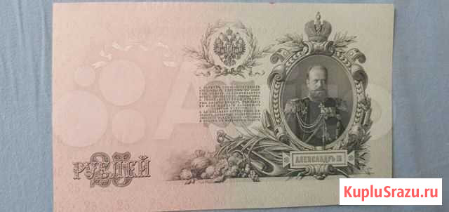 25 рублей Александр 3 1909 год. Состояние очень хорошее. Без заломов, перегибов, надрывов. Состояние: б/у.