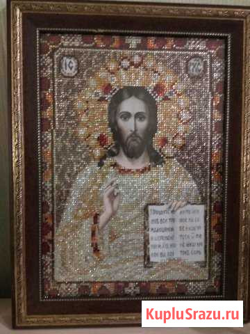 Икона вышитая бисером. Ручная работа. Размер изображения 19х24, оформлена в багет под стекло. Категория: коллекционирование. Вид объявления: продаю своё. Место сделки: московская область, раменское