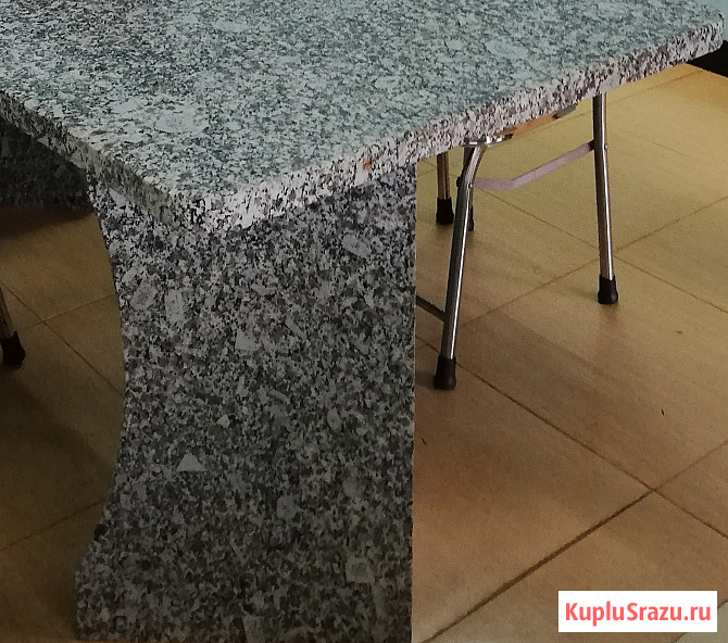 Природный рисунок камня, представлен кристаллами и крапинами молочных, серых, черных оттенков.