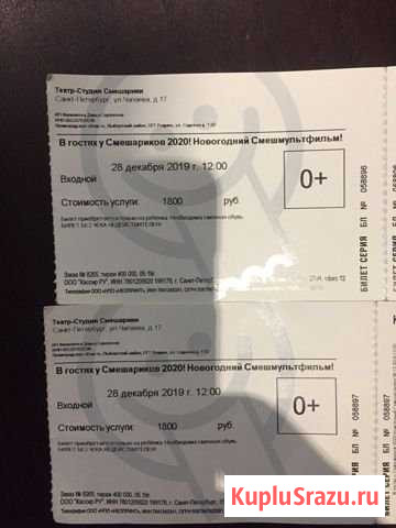 Продам билеты в АНИЧКОВ ДВОРЕЦ 04.01.2020, 16.30,продаю т к сможем пойти,срочно два билета по 1500 с подарком и два билета без подарка для взрослых 1200 Категория: билеты и путешествия