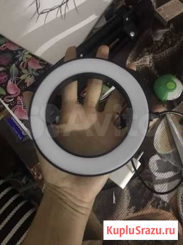 Кольцевая мини лампа Штатив отдельно за 200р Светит Очень хорошо провод длинный Купила неделю назад не пользуюсь потому что купила чуть больше размером 12 см чуть больше ладони Состояние: новое.