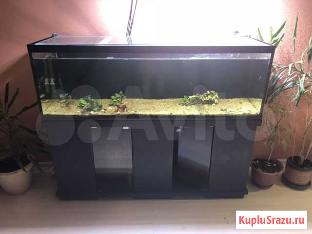 Новый свет, смотрите последнее фото . Аквариум 400 литров с тумбой, грунтом, внешним фильтром, баллон со2, светильники