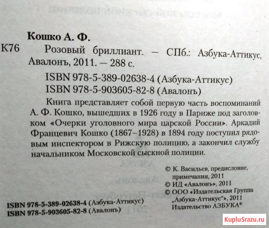 Три книги воспоминаний начальника Московской сыскной полиции Кошко А.Ф. 2011-2012 гг. Жестокие убийцы. Розовый бриллиант. Шантаж. Пишите. На незнакомые телефоны отвечаю не всегда