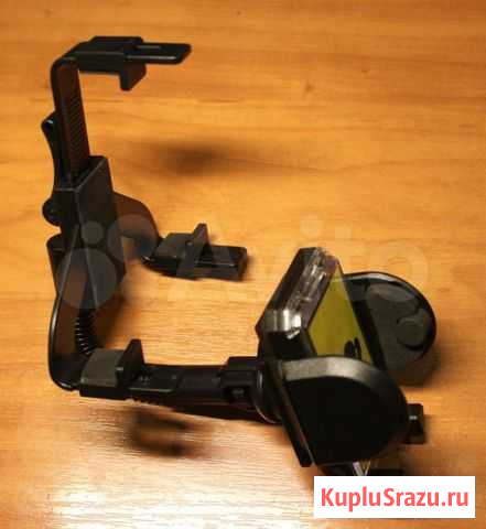 Продам крепление в автомобиль, которое позволяет закрепить смартфона к зеркалу заднего вида. Можно закрепить смартфон или планшет до 8" или 10 см шириной, мягкие губки хорошо зафиксируют аппарат, а благодаря жёсткому основанию он не будет болтаться. Угол крепления можно менять. Состояние: новое.
